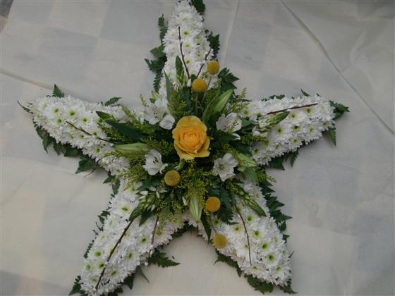 A massed tribute in the shape of a star. The spray on top can be done in a number of colours, please choose from the drop down menu below